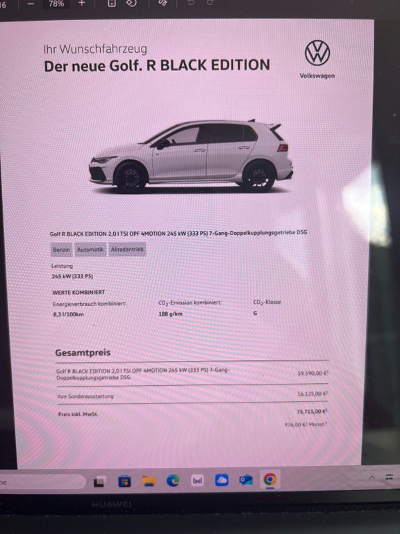 Подробный расчёт Volkswagen Golf R Black Edition, Leder, Akrapovic, Voll