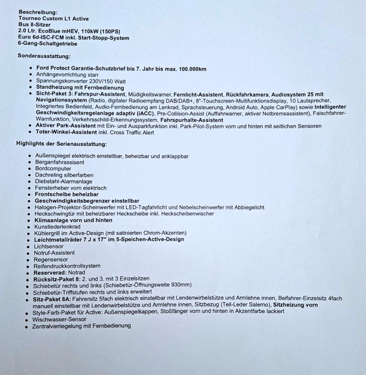 • Ford Tourneo Custom Active Garantie 05/27