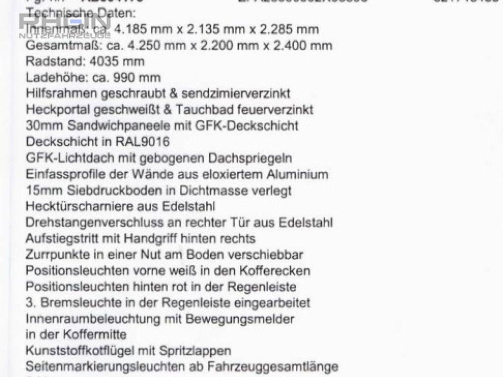 Подробный расчёт Fiat Ducato35 L5H1 Humbaur Koffer Flexbox Klima Navi