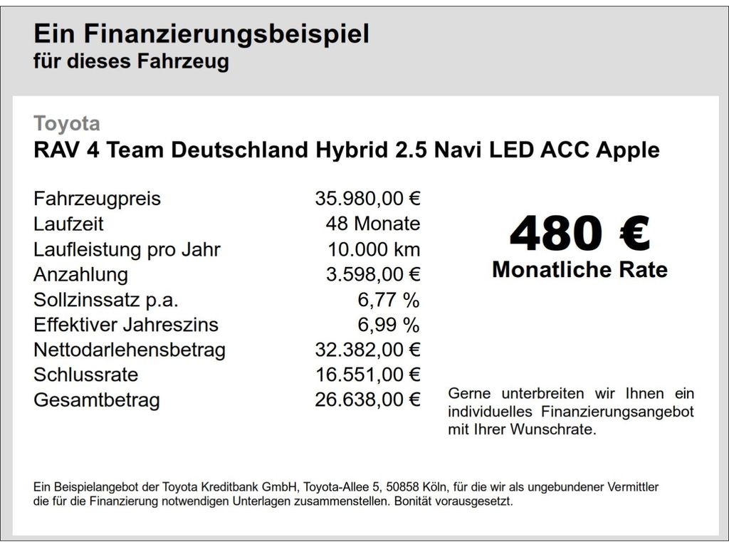 Подробный расчёт Toyota RAV 4 Team Deutschland Hybrid 2.5 Navi LED ACC A