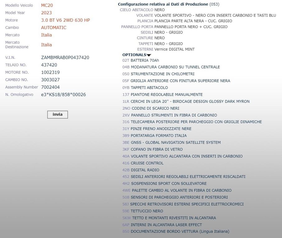 Комплектация Maserati MC20 3.0 V6 DCT —