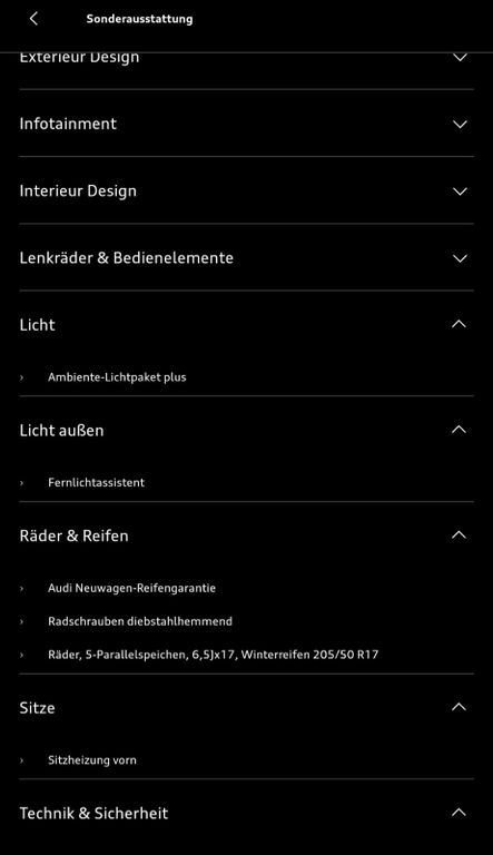 Комплектация Audi S3 Limo*B&O*Pano*MMI*Carb.Spoiler*OptikPlus
