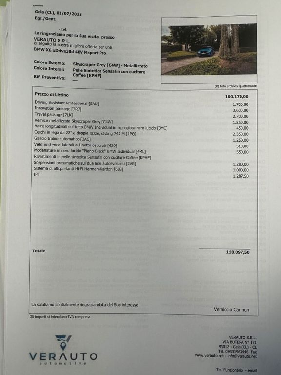 Подробный расчёт BMW X6 xdrive30d MSport possibilità noleggio nos