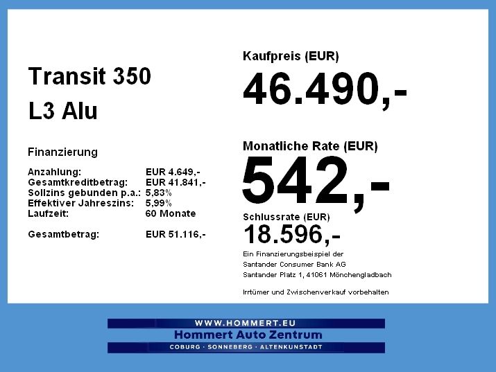 Подробный расчёт Ford Transit 350 L3 Alu Pritsche + Plane *SOF. VERF.*