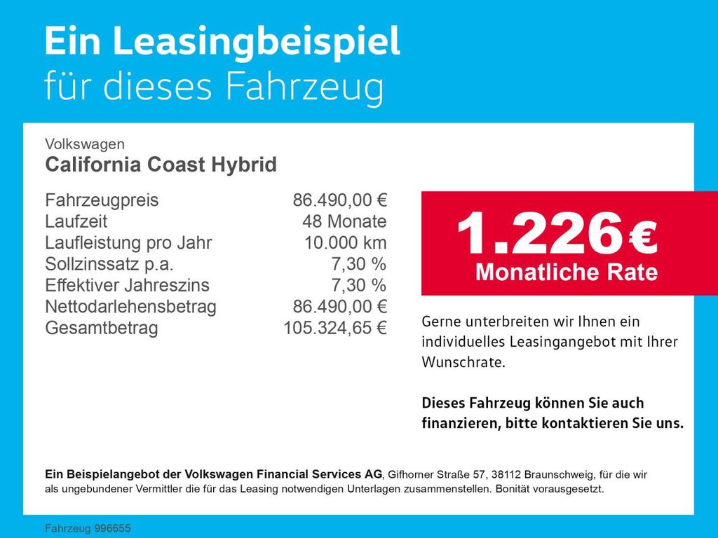 Подробный расчёт Volkswagen California Coast Hybrid Bluetooth Navi LED Klima