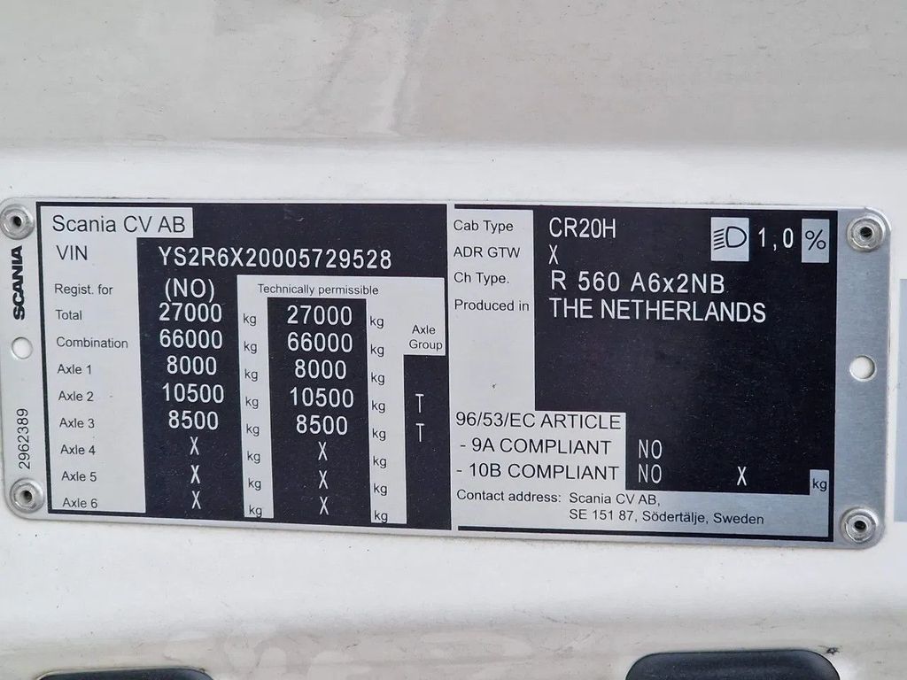 Комплектация Scania R560 Highline 6×2 — BUFFL — Retarder — Full air