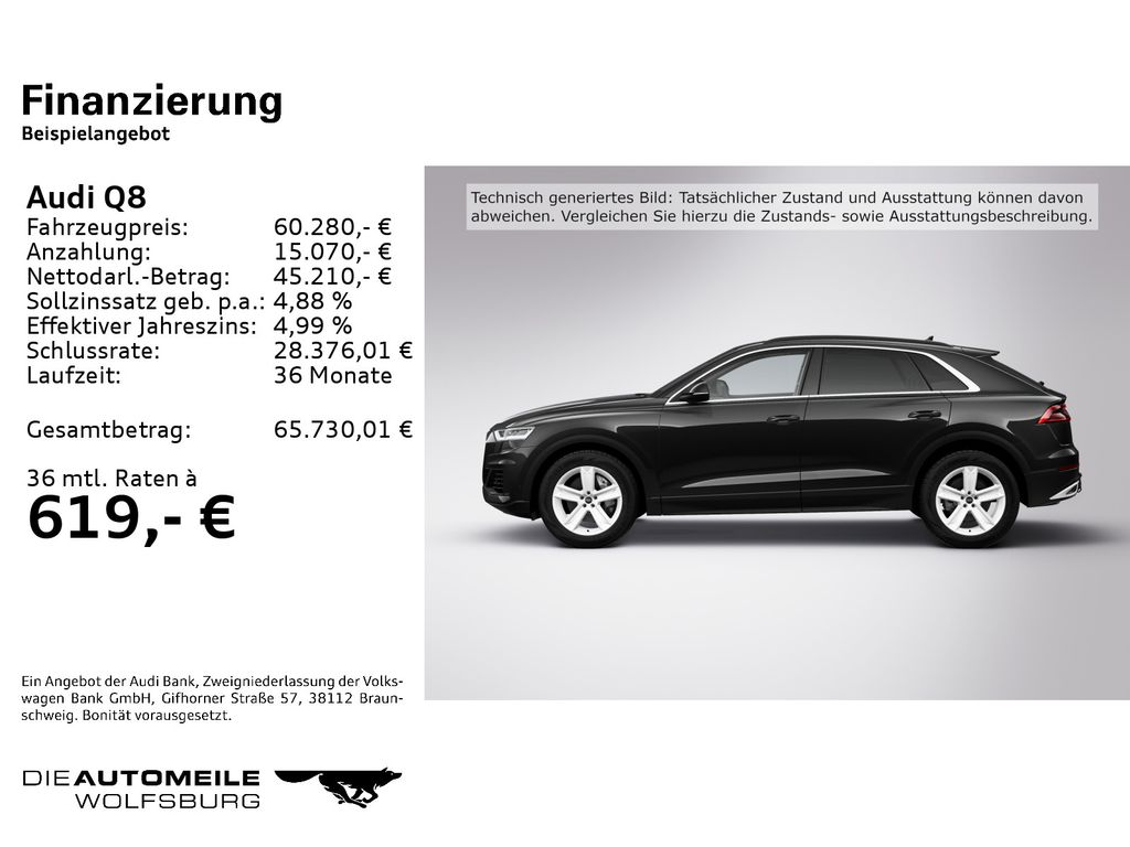 Подробный расчёт Audi Q8 55 TFSI Tiptronic quattro AHK/Pano/Rückkam