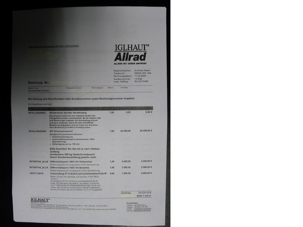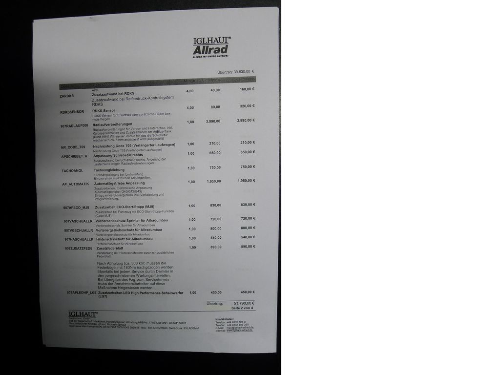 Подробный расчёт Mercedes-Benz 419 Sprinter Tourer IGLHAUT ALLRAD 9-Sitzer