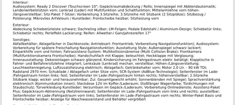Комплектация Volkswagen Caddy Maxi Style 7 Sitzer EZ 01/25 DSG Diesel