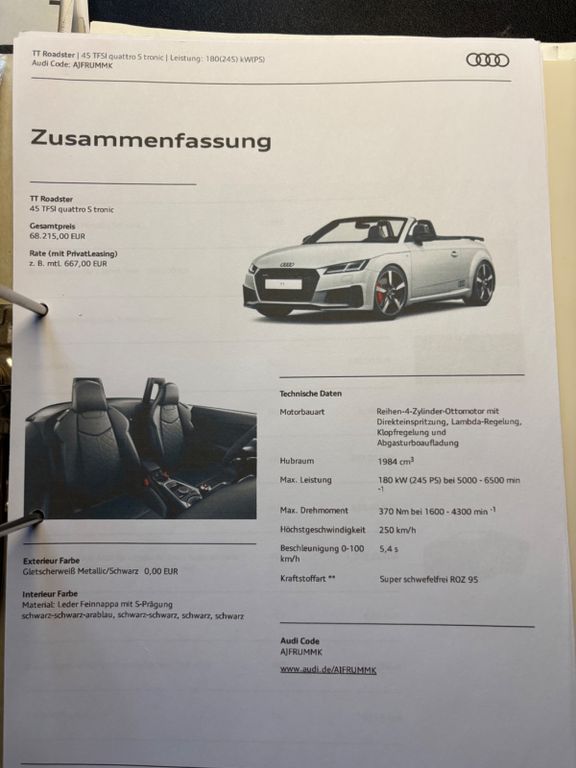 • Audi TT 45 TFSI S tronic Roadster — 245 PS