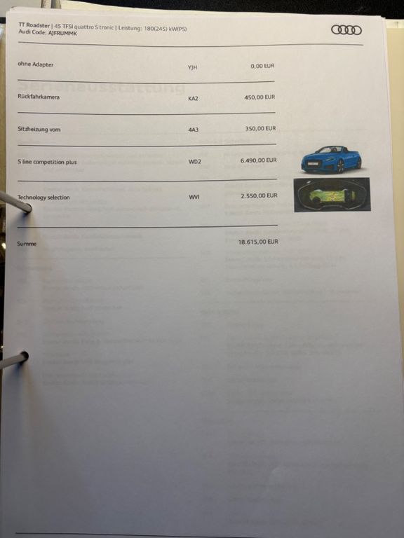 Подробный расчёт Audi TT 45 TFSI S tronic quattro Roadster —