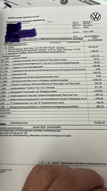 Подробный расчёт Volkswagen T7 Multivan 2.0 TDI SCR DSG Style Style
