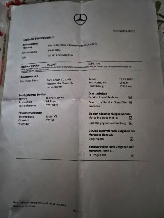 Подробный расчёт Mercedes-Benz V 220d 4×4 lang AMG Line LED/AHK/BURMESTER/19″